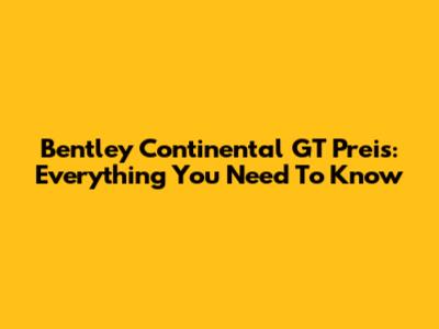 Bentley Continental GT Preis: Everything You Need To Know