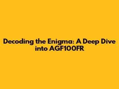 Hey guys! Ever stumbled upon a seemingly random string of characters and wondered what secrets it holds? Today, we're diving deep into one such enigma: AGF100FR. This alphanumeric code might seem like gibberish at first glance, but trust me, there's usually more than meets the eye. In this article, we'll break down what AGF100FR could potentially represent, explore different possibilities, and hopefully, shed some light on its meaning. So, buckle up and let's get started!
