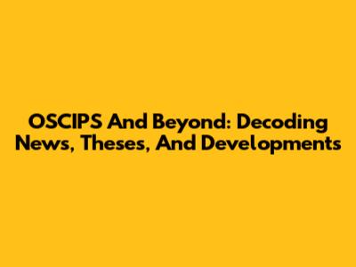 OSCIPS And Beyond: Decoding News, Theses, And Developments