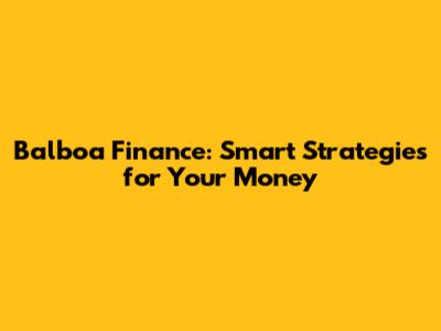 Balboa Finance: Smart Strategies For Your Money