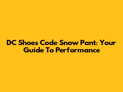 DC Shoes Code Snow Pant: Your Guide To Performance