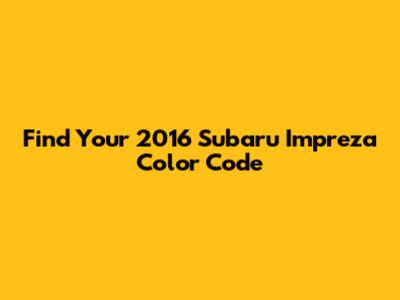 Find Your 2016 Subaru Impreza Color Code
