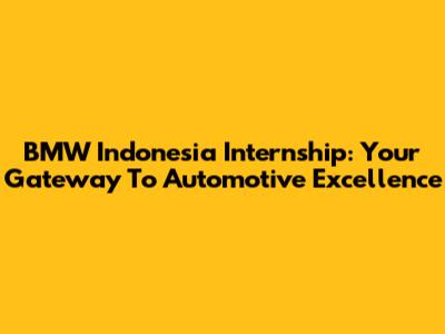 BMW Indonesia Internship: Your Gateway To Automotive Excellence