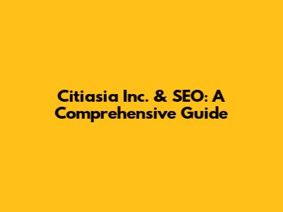 Citiasia Inc. & SEO: A Comprehensive Guide