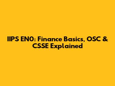 IIPS EN0: Finance Basics, OSC & CSSE Explained