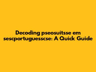 Let's dive into the enigmatic phrase 'pseosuitsse em sescportuguesscse.' Okay, guys, I know it looks like a bunch of gibberish at first glance, but stick with me. We're going to break it down and figure out what it might mean, why you might be seeing it, and what to do next. I will explore every part of this topic in detail.