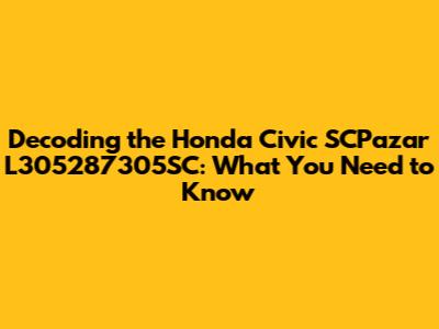 Decoding The Honda Civic SCPazar L305287305SC: What You Need To Know