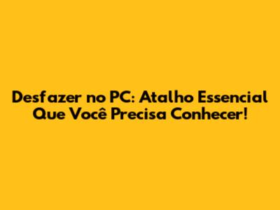 Desfazer No PC: Atalho Essencial Que Você Precisa Conhecer!