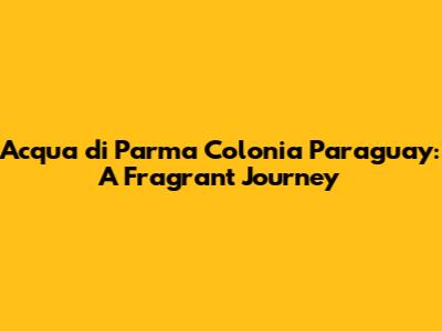 Hey guys! Ever wondered about finding the iconic Italian elegance of Acqua di Parma in the heart of South America? Well, you're in luck! This article is your ultimate guide to experiencing the timeless charm of Acqua di Parma's Colonia fragrance in Paraguay. We'll dive into where you can find this luxurious scent, explore its captivating notes, and maybe even share a few tips on how to make the most of your fragrance journey. Get ready to embark on a fragrant adventure, alright?