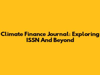 Climate Finance Journal: Exploring ISSN And Beyond