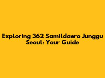 Exploring 362 Samildaero Junggu Seoul: Your Guide