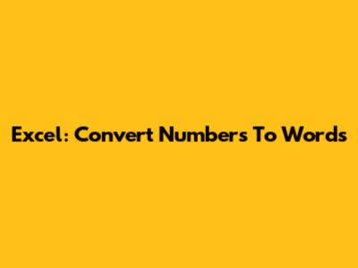 Excel: Convert Numbers To Words