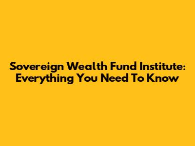 Sovereign Wealth Fund Institute: Everything You Need To Know