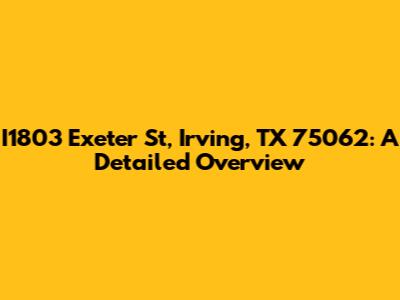 I1803 Exeter St, Irving, TX 75062: A Detailed Overview