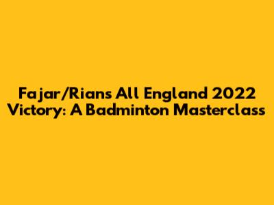 Alright guys, let's dive into the amazing story of Fajar Alfian and Muhammad Rian Ardianto, better known as Fajar/Rian, and their epic win at the All England Open in 2022! This wasn't just any win; it was a statement. A declaration that these Indonesian badminton stars were here to dominate. This All England journey was filled with nail-biting matches, incredible displays of skill, and the kind of moments that make badminton fans go wild. So, grab your rackets (or your favorite snack) and let's relive the magic of Fajar/Rian's All England 2022 triumph! The entire tournament was a testament to their dedication, training, and the sheer talent they possess. From the first serve to the final smash, they showcased a level of precision and strategy that left their opponents struggling to keep up. It wasn't just about winning; it was about the way they won. The sheer artistry and the tactical brilliance they displayed on the court were a sight to behold. This victory was a culmination of years of hard work, discipline, and unwavering belief in their abilities. They faced some of the toughest competitors in the world, yet they remained composed, focused, and determined to achieve their goal. Their performance at the All England Open 2022 was a masterclass in badminton. It was a perfect blend of skill, strategy, and mental fortitude. It was a journey that showed the world what these two young players were truly capable of. Their journey to the top wasn't easy, facing many challenges and setbacks along the way. But they never gave up. They kept pushing themselves to be better, to be stronger, to be the best. And their hard work paid off! Their victory was a source of pride for their country and a moment of inspiration for badminton fans around the globe. They showed everyone that with determination and perseverance, anything is possible. It’s no wonder that Fajar and Rian have become such beloved figures in the badminton world. Their sportsmanship, dedication, and amazing skills make them real role models for aspiring athletes. They've proven that with passion and hard work, you can conquer any challenge. This victory was not only a personal achievement for Fajar and Rian but also a major moment for Indonesian badminton as a whole. It showed the world that Indonesia continues to be a powerhouse in the sport, producing some of the most talented players in the world.