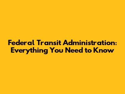 Federal Transit Administration: Everything You Need To Know