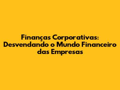 Finanças Corporativas: Desvendando O Mundo Financeiro Das Empresas