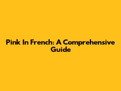Pink In French: A Comprehensive Guide