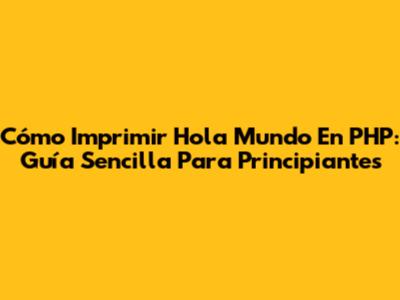Cómo Imprimir 'Hola Mundo' En PHP: Guía Sencilla Para Principiantes