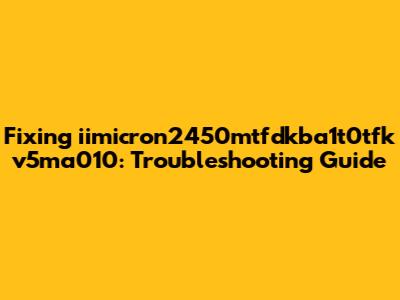 Hey guys! Ever stumbled upon the iimicron2450mtfdkba1t0tfk v5ma010 and felt a little lost? Don't sweat it! This guide is your friendly companion for understanding and troubleshooting this piece of tech. We'll break down the basics, discuss common issues, and give you some solid steps to get things running smoothly. This article aims to provide a comprehensive understanding of the iimicron2450mtfdkba1t0tfk v5ma010, its potential issues, and practical troubleshooting steps. We'll dive into identifying problems, understanding their root causes, and implementing effective solutions to restore optimal functionality. Troubleshooting can be a daunting task, but with the right knowledge and approach, you can navigate the complexities of this technology with confidence. Whether you're a seasoned tech enthusiast or a newcomer to the field, this article is designed to equip you with the skills and information necessary to diagnose and resolve issues efficiently. We'll explore various aspects of the iimicron2450mtfdkba1t0tfk v5ma010, including its functionality, common error messages, and best practices for maintenance. So, grab your favorite beverage, get comfortable, and let's unravel the mysteries of the iimicron2450mtfdkba1t0tfk v5ma010 together. The purpose of this guide is to provide a clear and concise roadmap for troubleshooting issues related to the iimicron2450mtfdkba1t0tfk v5ma010, empowering users to diagnose and resolve problems effectively. The iimicron2450mtfdkba1t0tfk v5ma010, like any complex piece of technology, can sometimes encounter operational challenges. Understanding the potential issues and having a systematic approach to troubleshooting is crucial for maintaining its performance and ensuring its longevity. This guide offers a practical, step-by-step approach to help you identify the root causes of problems and implement effective solutions. Whether you're encountering error messages, performance issues, or other operational difficulties, this resource is designed to be your go-to guide for resolving them. This troubleshooting guide provides detailed instructions and insights, ensuring you have all the necessary information to tackle any problem you might encounter. It's designed to be user-friendly, with clear explanations and practical advice, to help you resolve any issues quickly and efficiently. The goal is to equip you with the knowledge and tools you need to become proficient in maintaining and troubleshooting the iimicron2450mtfdkba1t0tfk v5ma010. You'll gain a deeper understanding of its functionality and learn how to prevent future problems. This guide is your ultimate resource for ensuring the smooth operation and longevity of your technology.