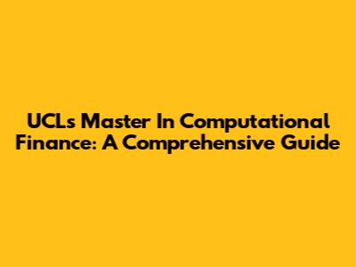 UCL's Master In Computational Finance: A Comprehensive Guide