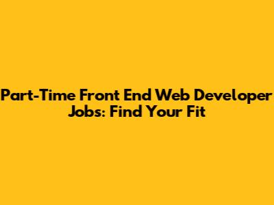 Part-Time Front End Web Developer Jobs: Find Your Fit