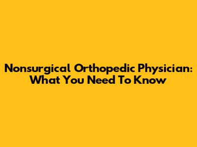 Nonsurgical Orthopedic Physician: What You Need To Know