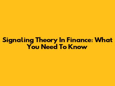 Signaling Theory In Finance: What You Need To Know