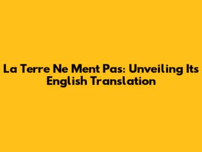 La Terre Ne Ment Pas: Unveiling Its English Translation