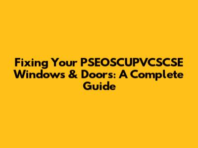 Fixing Your PSEOSCUPVCSCSE Windows & Doors: A Complete Guide