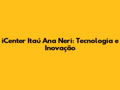 Tecnologia de Ponta e o Futuro dos Serviços no iCenter Itaú Ana Neri