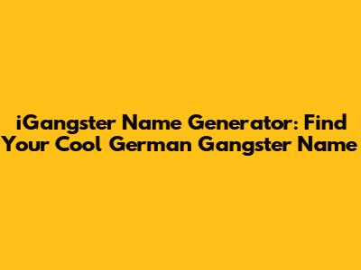 IGangster Name Generator: Find Your Cool German Gangster Name