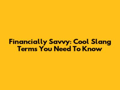 Financially Savvy: Cool Slang Terms You Need To Know