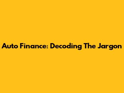 Auto Finance: Decoding The Jargon