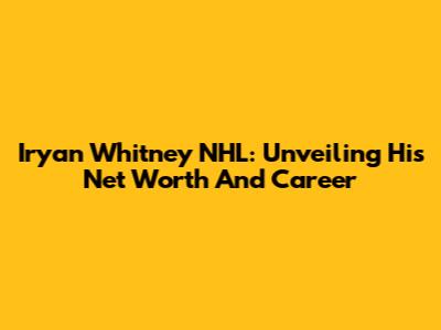 Iryan Whitney NHL: Unveiling His Net Worth And Career