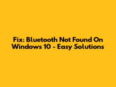 Fix: Bluetooth Not Found On Windows 10 - Easy Solutions