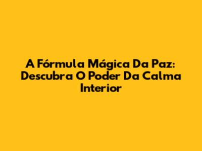 A Fórmula Mágica Da Paz: Descubra O Poder Da Calma Interior