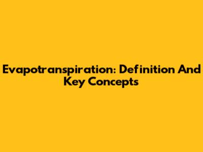Evapotranspiration: Definition And Key Concepts