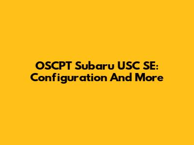 OSCPT Subaru USC SE: Configuration And More