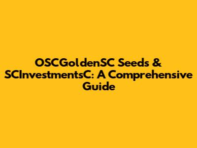OSCGoldenSC Seeds & SCInvestmentsC: A Comprehensive Guide