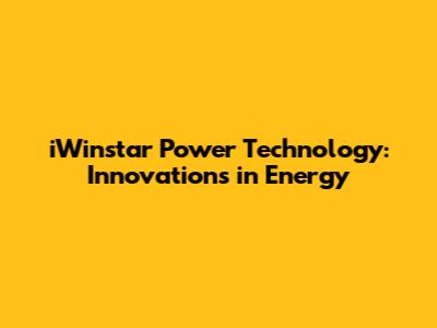 IWinstar Power Technology: Innovations In Energy