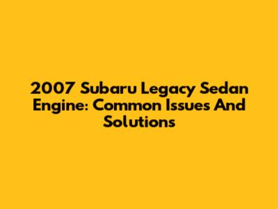2007 Subaru Legacy Sedan Engine: Common Issues And Solutions