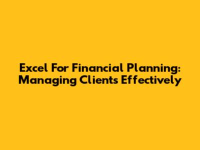 Excel For Financial Planning: Managing Clients Effectively