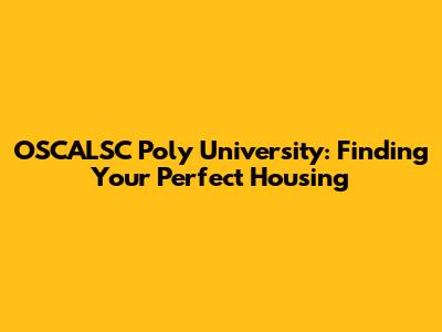 OSCALSC Poly University: Finding Your Perfect Housing