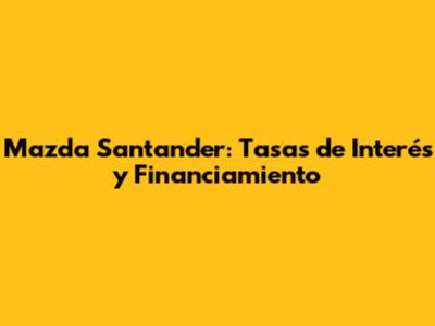 Mazda Santander: Tasas De Interés Y Financiamiento