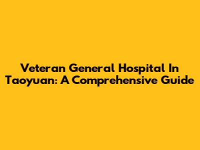 Veteran General Hospital In Taoyuan: A Comprehensive Guide