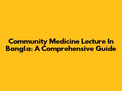 Community Medicine Lecture In Bangla: A Comprehensive Guide