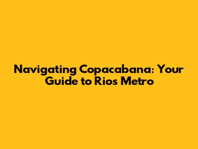 Hey guys! Getting around Rio de Janeiro, especially in a bustling area like Copacabana, can seem a bit daunting at first. But trust me, once you get the hang of it, it’s super easy, and the Imetro Rio de Janeiro is your best friend. Let's dive into everything you need to know about using the metro to explore Copacabana and beyond. Think of this as your ultimate, chill guide to mastering the Rio metro system.