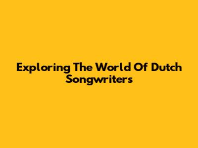 Exploring The World Of Dutch Songwriters
