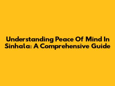 Understanding 'Peace Of Mind' In Sinhala: A Comprehensive Guide